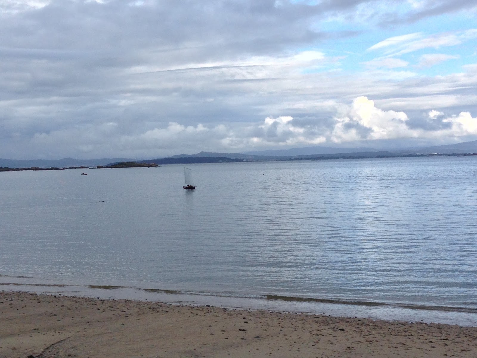 | Así nos despedía a tarde en Ribeira, cunha dorna enlazando o telón do mar e o ceo |
